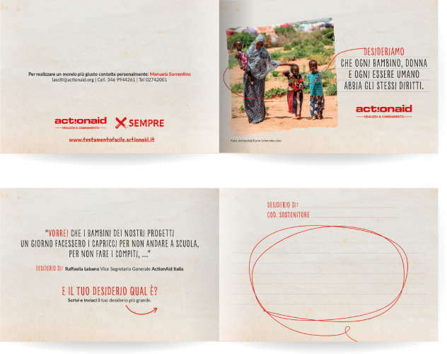 Un concept basato sul desiderio come tensione progettuale verso il futuro ispirato a una frase del Segretario Generale: “Vorrei che i bambini dei nostri progetti un giorno facessero i capricci per andare a scuola”.