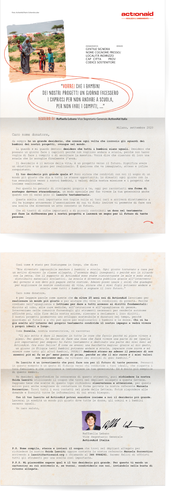 Un concept basato sul desiderio come tensione progettuale verso il futuro ispirato a una frase del Segretario Generale: “Vorrei che i bambini dei nostri progetti un giorno facessero i capricci per andare a scuola”.